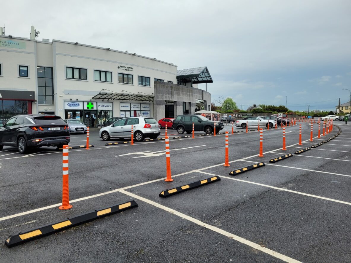 Colas Contracting needed to separate vehicle traffic and reduce collisions in the busy Joyce's Supermarket car park in Oranmore. The parking space layout meant that vehicles were exposed to collisions in between busy traffic lanes on either side.
